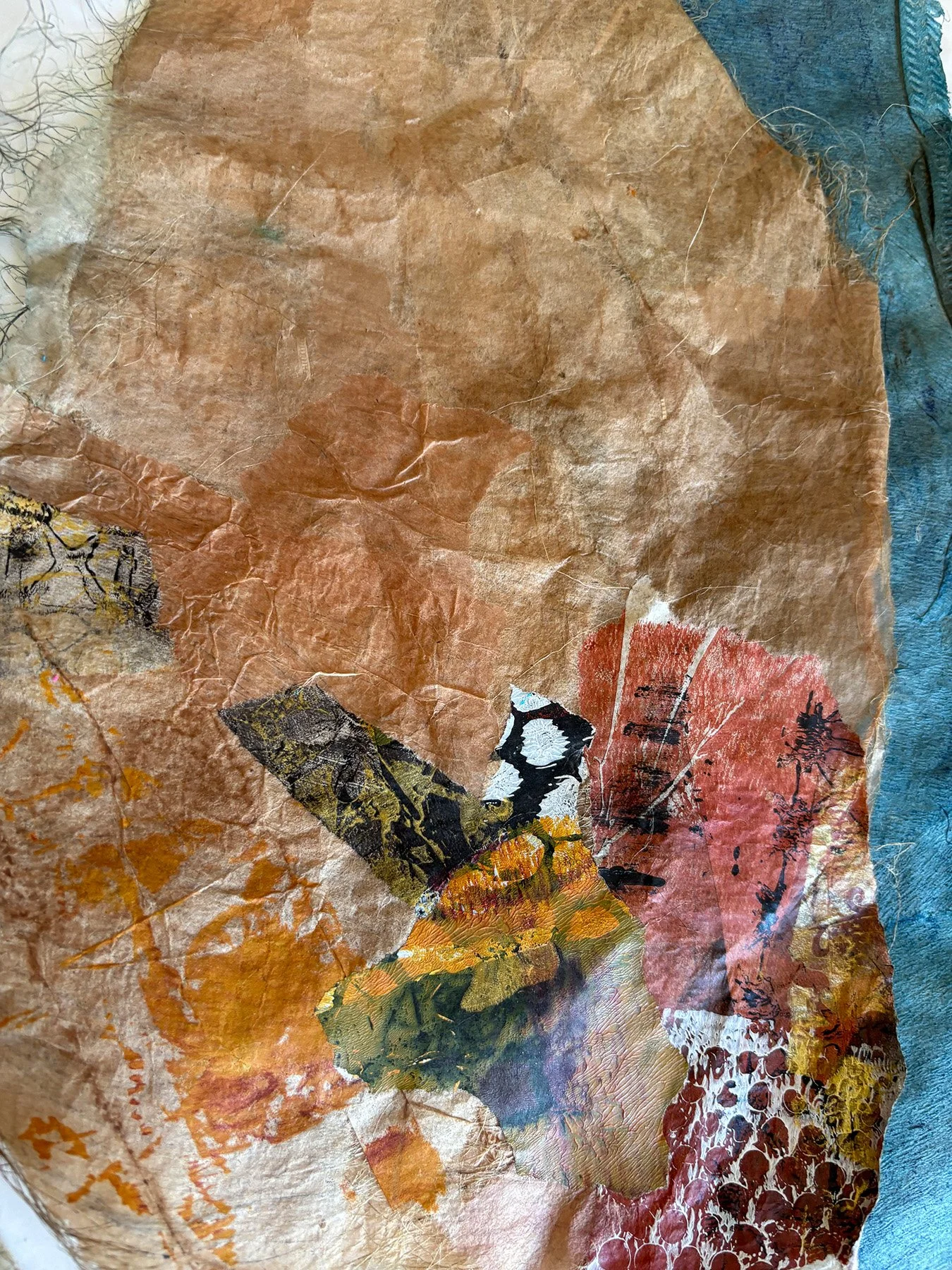 Take a deep dive into fiber art through collage and materiality. Explore the nature of textured paper combined with foraged materials, thread, ink and dye.